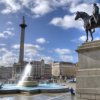 - Plac Trafalgar Square z kolumną Nelsona i czterema lwami, będący tradycyjnym miejscem spotkań politycznych i sylwestrowych
