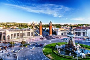 - Plac Hiszpański z licznymi fontannami, Wieżami Weneckimi i imponującym Pałacem Narodowym